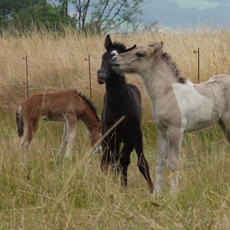 Unsere Jungpferde wachsen in artgerechten Herden auf weitläufigen Weiden auf. Viel Bewegung, frische Luft und ein harmonisches Sozialgefüge sorgen für eine gesunde körperliche und mentale Entwicklung.